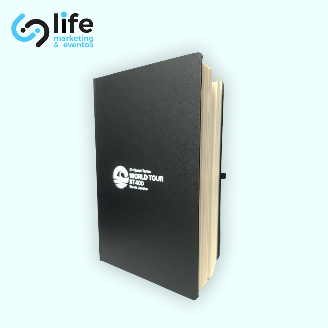 Caderno modelo moleskine folhas A5 sem pautas com design personalizado em couro sintético